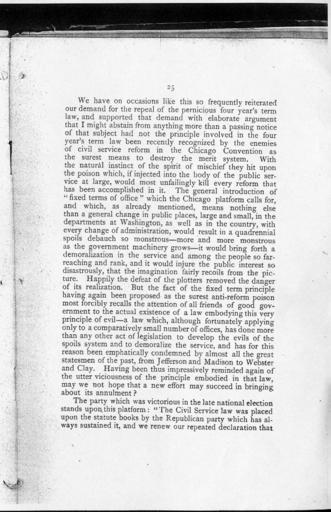 Keywords: Encouragements and Warnings p25.JPG en Speech of National Civil Service Reform League president Carl Schurz before its annual meeting of December 10 1896 in Philadelphia p 25 Single page scan 200 dpi Carl Schurz Encouragements and Warnings National Civil Service Reform League 1896; courtesy of Boston Public Library Carl Schurz 1896-12-10 PD-Old Encouragements and Warnings Page Images |