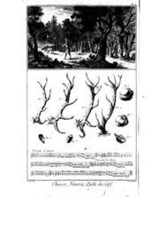 Keywords: Encyclopedie volume 2b-041.png PLANCHE Iere De la venerie La quête du cerf de la composition de Rhidinger peintre allemand LA vignette représente une forêt dans le fond de laquelle on voit un cerf sur le devant un piqueur tenant le trait du limier qui marche devant lui déployé Le limier a la botte au col voyez Pl VII le valet du limier n'est pas censé voir le cerf; mais il suit le limier qui le conduit sur les voies ou pas du cerf Voici la maniere de dresser le limier Fig 1 Tête d'un jeune cerf 2 Tête d'un cerf dix cors jeunement 3 Tête d'un cerf dix cors 4 Tête d'un vieux cerf a meules ou bosses où tient la fraize b fraize ou pierrure c mairin ou perche d gouttieres e andouillers ou cors f empaumure Les premieres têtes que portent les cerfs se nomment dagues Elles leur viennent au commencement de leur seconde année naissent de leurs meules ou bosses qu'ils poussent à un an; au bout de leur seconde année ils mettent bas leurs dagues Book Encyclopedie Planches 2b 040 042 PD-old-100-1923 Cervus elaphus antlers Hunting in art Antlers in art Encyclopédie ou Dictionnaire raisonné des sciences des arts et des métiers volume 2b 041 |