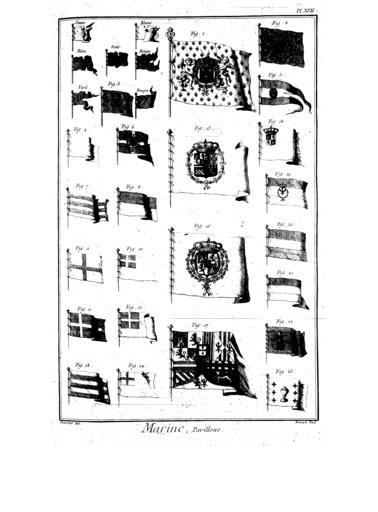 | Keywords: Encyclopedie volume 6-143.png Planches de l'Encyclopédie de Diderot et d'Alembert volume 6 Flag chart from French Encyclopédie part 1 of 8 showing hatching conventions to represent heraldic tinctures royal France royal standards of Spain etc Encyclopédie flag chart 1 2 3 4 5 6 7 8 Key summarized in translation from captions in image File Encyclopedie volume 6-108 png 1 Royal flag of France 2 French royal galleys 3 Other French royal galleys flag 4 Blank white French royal flag 5 French merchant flag 6 French merchant 1689 7 Other French merchant 8 Normandy 9 Provence 10 Marseilles 11 Calais 12 Dunkirk 13 Other Dunkirk 14 Other Dunkirk 15 Spanish royal flag 16 Other Spanish royal 17 Spanish Hapsburg flag 18 Castile and Leon 19 Spanish galleys 20 Red-yellow-blue Spanish horizontal tricolor 21 Other Spain 22 Barcelona 23 Galicia Encyclopédie ou Dictionnaire raisonné des sciences des arts et des métiers volume 6 PD-old Flag charts |