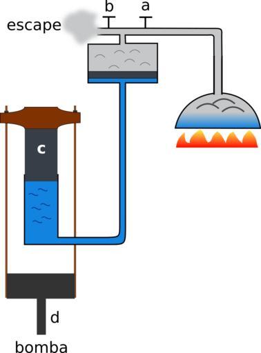 | Keywords: Engine threvithick plunger pole.svg en Richard Trevithick plunger and pole steam engine outline Valve a steam inlet is briefly opened High pressure steam expands inside the cylinder pushing the plunger down Plunger c is pushed up by the water inside the cylinder rising the pump's piston through the pole d When the exhaust b is opened plunger and pole go down again es Esquema de la máquina de vapor de émbolo y pértiga de Richard Trevithick Se abre la válvula a admisión de vapor brevemente El vapor a alta presión se expande en el cilindro provocando que el pistón baje y el émbolo c suba empujado por el agua que hay en el interior del cilindro La pértiga d acciona la bomba Al abrir la válvula de escape c la pértiga baja nuevamente 2014-07-04 10 36 22 own MdeVicente cc-zero Uploaded with UploadWizard Drawings of steam engines Richard Trevithick |