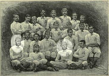 Keywords: EnglandRugbyTeam1871RavenscourtPlayers.jpg en A picture of the first England Rugby side in 1871 with players from the Ravenscourt Park Football Club highlighted Football The Rugby Union Game Cassell Company Ltd edited by F Marshall in 1892 Not specified 1871 original photo PD-old-70-1923 1871 England national rugby union team 1871 in rugby union |