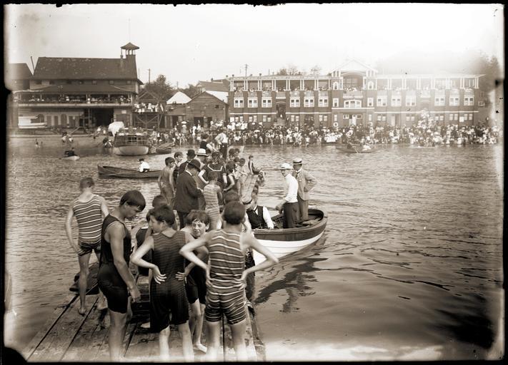 | Keywords: monochrome photo border English Bay swimming race Date: 190- VPL 5454 Philip Timms photograph Content: People on the beach and in boats. First Beach Pavilion (taller building, left), the Crescent (lower building, left) and another bathhouse (built in 1905), right with Simpson's rental boat house in between. Boys and men line a platform in the water, foreground. Topic: Boats and boating Swimming More information on our historical photograph collection: www.vpl.ca/historicalphotos English Bay swimming race Date: 190- VPL 5454 Philip Timms photograph Content: People on the beach and in boats. First Beach Pavilion (taller building, left), the Crescent (lower building, left) and another bathhouse (built in 1905), right with Simpson's rental boat house in between. Boys and men line a platform in the water, foreground. Topic: Boats and boating Swimming More information on our historical photograph collection: www.vpl.ca/historicalphotos |