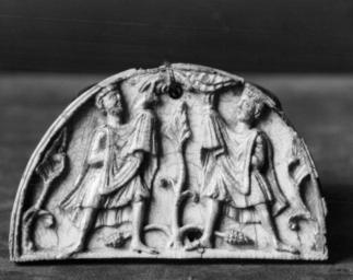 Keywords: English - The Sacrifice of Cain and Abel - Walters 71289 (2).jpg conj or England This semi-circular ivory plaque is carved with the biblical narrative of Genesis 4 2-4 describing the offerings to God made by the sons of Adam and Eve Above the Hand of God emerges from a cloud to bless Abel who stands at the left holding a lamb while at the right Cain and his offering of a sheaf of wheat are not blessed Scenes of the Sacrifice of Cain and Abel were often used on portable altars to symbolize the offering of the Eucharist the bread and the wine representing Christ's body and blood during the Mass The style of the figures and drapery is similar to manuscript illuminations from Jumièges in northern France and St Alban's in England early Other date century 12 Medieval ivory cm 6 3 10 5 1 5 accession number 71 289 15286 Count Auguste de Bastard date and mode of acquisition unknown Henri Daguerre Paris date and mode of acquisition unknown Henry Walters city Baltimore Walters Art Museum Henry Walters Acquired by Henry Walters 1926 Arts of the Middle Ages Museum of Fine Arts Boston Boston 1940 place of origin England United Kingdom <gallery> File English - The Sacrifice of Cain and Abel - Walters 71289 jpg </gallery> Walters Art Museum license Medieval ivory in the Walters Art Museum Gothic art in the United Kingdom Media contributed by the Walters Art Museum needs category review |