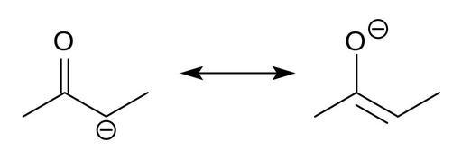 Keywords: Enolate Resonance.svg en Resonance stabilization of keto-enolate ion Drawn with BKChem processed with Inkscape Fabiuccio Functional groups Enolates Mesomerism