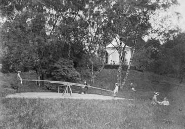 Keywords: Enskede gård parken 1880.jpg sv Enskede gårds park och lusthus Stockholms stadsmuseum Johannes Jaeger 1880 Enskede gård mansion Johannes Jaeger PD-old