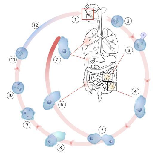 Keywords: Entamoeba histolytica numbered.svg Entamoeba histolytica is an anaerobic parasitic protozoan part of the genus Entamoeba It infects predominantly humans and other primates Entamoeba histolytica un protozoaire anaérobie parasite appartenant au genre Entamoeba Cet amibe infecte principalement les humains et les autres primates Version numérotée de Entamoeba histolytica life cycle-en svg numbered version of the image Entamoeba histolytica life cycle-en svg self-made based on http //www dpd cdc gov/DPDx/HTML/Amebiasis htm http //www biology-resources com/documents/amoeba-1 doc http //www microbiologybytes com/introduction/graphics/Enta gif http //www saudeanimal com br/imagens/entamoeba gif http //www sfda gov sa/NR/rdonlyres/E99EC3AD-9B45-4BF3-80BF-251F41E1D1BF/439/Ehistolytica05 jpg and http //www-ermm cbcu cam ac uk/fig001wpc gif together with the book Parasitologia clinica from craig and faust 2008-07-12 Mariana Ruiz Villarreal LadyofHats LadyofHats Other versions/Entamoeba histolytica Entamoeba life cycle Diagrams labelled with numbers only |