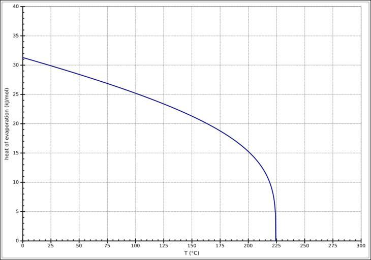 Keywords: Enthalpy of evaporation 2-methylpentane.svg en Heat of evaporation of 2-methylpentane - temperature dependence de Verdampfungswärme von 3-Methylpentan - Temperaturfunktion own Steffen 962 2012-05-13 calculated according/berechnet nach Δ<sub>V</sub>H<sup>0</sup> A·exp ˆ’β·T<sub>r</sub> 1 ˆ’T<sub>r</sub> <sup>β</sup> Δ<sub>V</sub>H<sup>0</sup> in kJ/mol T<sub>r</sub> T/T<sub>c</sub> reduzierte Temperatur mit A 45 25 kJ/mol β 0 2739 und T<sub>c</sub> 497 5 K V Majer V Svoboda Enthalpies of Vaporization of Organic Compounds A Critical Review and Data Compilation Blackwell Scientific Publications Oxford 1985 300 Heat of evaporation Cc-zero |