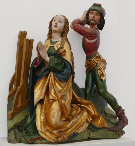 Keywords: Enthauptung der hl Katharina Bode-Museum.jpg de Enthauptung der hl Katharina eventuell aus dem Hochaltarretabel der Liebfrauenkirche Ravensburg aus dem auch die Ravensburger Schutzmantelmadonna stamnt um 1480 Lindenholz ursprüngliche Fassung en Beheading of St Catherine possibly from the same high altar altarpiec of the Church of our Lady in Ravensburg that the Ravensburg Schutzmantelmadonna is from; c 1480 limewood original colours <br />Skulpturensammlung Inv 423 erworben 1882 Bode-Museum Berlin own 2007 Object Michel Erhart fl Ulm 1469 “1522 or Friedrich Schramm fl Ravensburg c 1480 “c 1515 see also Category Ravensburger Schutzmantelmadonna Photo Andreas Praefcke Object PD-old Photograph Gothic sculpture in the Bode-Museum Ulmer Schule Statues of Saint Catherine of Alexandria Beheadings of Christian saints Martyrdom of Saint Catherine of Alexandria |