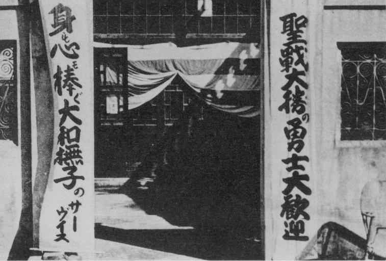 Keywords: Entrance of a comfort station.png Yamato nadeshikos who devote their body and soul to you Victorious warriors of the Holy War Very welcome 慰安 入り口 身も心も捧ぐ大和撫子のサーヴイス 聖戰大 の勇士大歓迎 before 1946 映像が語る 日韓併合 史 1875年--1945年 / Eizō ga kataru Nikkan heigō shi 1875-nen--1945-nen by Ki-su Sin; p 296 ISBN 9784947585295 not described 記載なし Custom license marker 2013 05 11 PD-Japan-oldphoto Uploaded with UploadWizard Comfort women of the Empire of Japan |