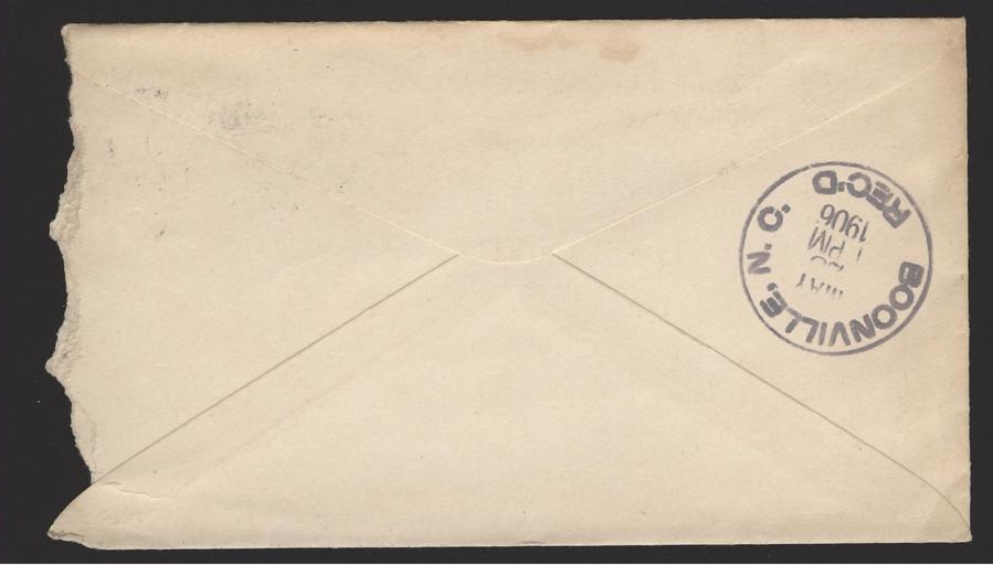 Keywords: Envelope - Boonville Address-002.jpg Image Envelope - Wood Food Company pdf first DCT picture Keywords 1906 North Carolina Boonville Statesville The Wallace Bros' Company Envelope Cancelled Stamp Postmark PD-old 1906 Postal covers of the United States |