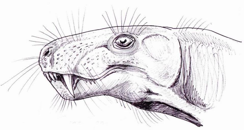 Keywords: Eoarctops.jpg Голова Eoarctops - п имитивного го гонопса с еднепе мской эпохи Южная Аф ика Длина животного около 1 мет а Eoarctops Own 2007 Богданов dmitrchel mail ru ДиБгд Images by Dmitry Bogdanov Gorgonopsia