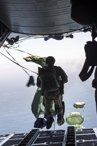 Keywords: EODMU-11 static-line and free-fall parachute qualification jumps 140703-N-JP249-225.jpg en A member of Explosive Ordnance Disposal Mobile Unit EODMU 11 jumps out of a Wyoming Air National Guard C-130 Hercules during a static-line parachute qualification jump EODMU-11 provides operational capability for the location identification rendering safe recovery field evaluation and disposal of explosive ordnance U S Navy photo by Mass Communication Specialist 2nd Class Kenan O'Connor/Released 2014-07-03 Petty Officer 2nd Class Kenan O'Connor https //www dvidshub net/image/1440908 140703-N-JP249-225 2014-07-09 20 44 SAN DIEGO CA US PD-USGov-Military-Navy Lockheed C-130 Hercules Images from DoD uploaded by Fæ
