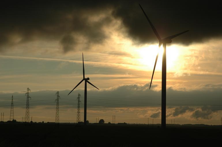 Keywords: eoliennes storm clouds sky sunset wind energy