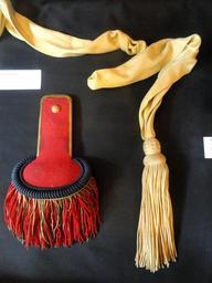 Keywords: Epaulet and sash - Framingham History Center - DSC00452.JPG Epaulet and sash Exhibit in the Framingham History Center Edgell Memorial Library 3 Oak Street Framingham Massachusetts USA Photography was permitted in the museum without restriction I took this photograph 2011-07-09 14 33 22 Daderot Public domain Framingham History Center Fringed epaulettes |