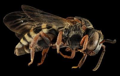 | Keywords: taxonomy binomial=epeolus scutellaris taxonomybinomialepeolusscutellaris epeolus scutellaris epeolusscutellaris colletes parasite maine nest parasite nestparasite bug bugs bee bees pollinator pollinators animal animals animalia arthropod arthropods arthropoda insect insects insecta hymenoptera aculeata anthophila apoidea cuckoo bee cuckoobee cuckoo bees cuckoobees apidae epeolini nomadinae epeolus usgs droege biml usgsbiml black background surreal A nest parasite of Colletes bees, this is perhaps the most common of the Epeolus species in eastern North America. This species main target is likely the common fall Cellophane Bee Colletes simulans. Photograph by Brooke Alexander. Canon Mark II 5D, Zerene Stacker, 65mm Canon MP-E 1-5X macro lens, Twin Macro Flash, F5.0, ISO 100, Shutter Speed 200 A nest parasite of Colletes bees, this is perhaps the most common of the Epeolus species in eastern North America. This species main target is likely the common fall Cellophane Bee Colletes simulans. Photograph by Brooke Alexander. Canon Mark II 5D, Zerene Stacker, 65mm Canon MP-E 1-5X macro lens, Twin Macro Flash, F5.0, ISO 100, Shutter Speed 200 |
