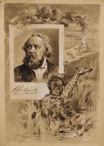 Keywords: Erdmann Wagner Ferdinand Freiligrath.jpg F Freiligrath vor Safarikulisse in Anspielung an dessen 'Wüsten- und Löwenpoesie' Lavierte Tuschfederzeichnung in Sepiatönen weiss gehöht Bl 47 x 34 cm http //www zeller de Auktionshaus Zeller by 1917 Erdmann Wagner 1842-1917 PD-old-70-1923 Images from Auktionshaus Zeller Erdmann Wagner Ferdinand Freiligrath Giraffes in art |