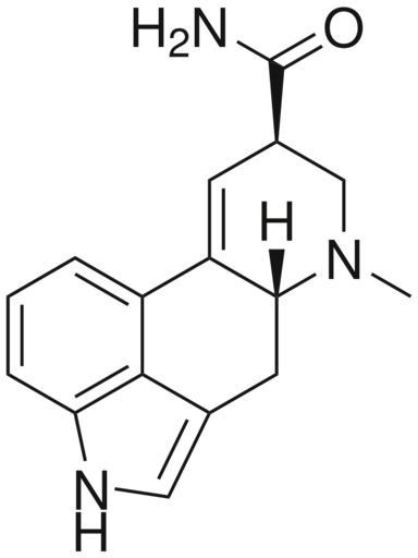 Keywords: Ergine.svg en 2D structure of psychedelic drug ergine also known as d-lysergic acid amide or LSA Own Harbin 2008-12-22 Ergot alkaloids