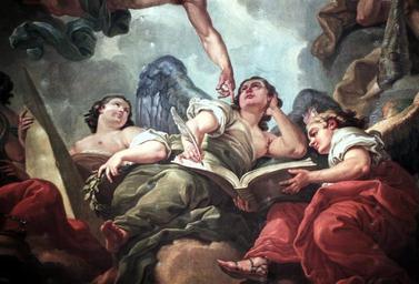Keywords: Erhebung des Großen Kurfürsten in den Olymp (van Loo) - Standhaftigkeit, Poesie, Pietas.jpg The Elevation of the Great Elector into Olympus Oil on canvas destroyed in World War II Ceiling painting detail Steadfastness / Military victory Poesy or Storia history and fame and Piety City Palace Potsdam Die Erhebung des Großen Kurfürsten in den Olymp Öl auf Leinwand Kriegsverlust Deckengemälde Ausschnitt Standhaftigkeit / militärischer Sieg Poesie oder Storia Geschichte und Nachruhm und Pietas Stadtschloss Potsdam 20366819 LAC 9 003/19 fmlac9003_19 <br /> Foto Peter Cürlis; color ; Aufnahme-Datum um 1944 04/1944 08; Zugang Dauerleihgabe Kunsthistorisches Institut der Universität Mainz Fotoinhalt Ausschnitt Fortitudo Clio und Inspiration artwork Creator Charles-Amédée-Philippe van Loo file James Steakley 1751 Die Erhebung des Großen Kurfürsten in den Olymp van Loo PD-old-100-1923 The Elevation of the Great Elector into Olympus van Loo Allegories of virtues |