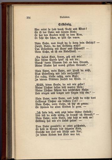 Keywords: Erlkönig.jpg creator Johann Wolfgang von Goethe Erlkönig Goethes Werke Erster Band Bertelsmann Gütersloh o J S 104 1782 Centipede PD-old-100 Erlkönig Goethe