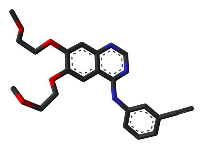Keywords: Erlotinib-1m17-3D-sticks-skeletal.png Stick model of the erlotinib molecule X-ray crystallographic data from http //dx doi org/10 2210/pdb1m17/pdb PDB 1m17 Own 2008-03-27 Ben Mills Benjah-bmm27 Images by Ben Mills Erlotinib