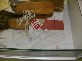 Keywords: Erwin Laepple Trikot.JPG en Jersey of Erwin Läpple German football Champion with VfB Stuttgart in 1950 and 1952 de Trikot von Erwin Läpple Deutscher Fußballmeister 1950 und 1952 mit dem VfB Stuttgart Aufgenommen auf der Ausstellung Mythos VfB - 100 Jahre Fusion own Yoda1893 2012-03-30 History of VfB Stuttgart Cc-zero |