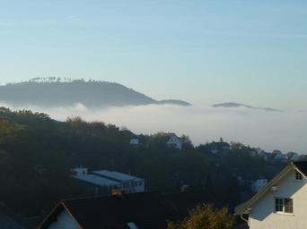 Keywords: Eschenburg (Berg).jpg en Eschenburg mountain de Der Gipfel der Eschenburg ragt aus dem Frühnebel heraus Fotografiert aus Richtung Norden own Marco Dienst 2010-10-23 Cc-zero Eschenburg