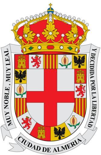 Keywords: Escudo de Almería.svg Escudo de Almería «Cuartel central Génova Cruz de San Jorge Roja carmesí sobre fondo de plata Cuarteles exteriores El número de Cuarteles que componen la bordura son quince compones distribuidos de manera alternativa en Granadas Aguilas Castillos Leones y Palos en número de tres por cada uno de estos símbolos Granada Granadas de oro con granos rojos sobre fondo de plata Castilla Castillo de oro sobre fondo rojo carmesí León Leones rojos carmesí rampantes sobre fondo de plata Aragón Palos rojos carmesí sobre fondo de oro Navarra Aguilas de San Juan unicéfalas negras sobre fondo de oro correspondiente al antiguo escudo de Navarra Corona Corona Real Cerrada Dorada con perlas almohadillado rojo y pedrería Orla De plata con inscripción en negro y con la leyenda Muy noble muy leal y decidida por la libertad ciudad de Almería » http //www andaluciajunta es/portal/boletines/2005/02/aj-bojaVerPagina-2005-02/0 22942 bi 253D696582358883 00 html Página 12 del Boletín número 26 de 7 de febrero de 2005 del BOJA Own HansenBCN Coats of arms of Almería Almeria SVG coats of arms of Spain |