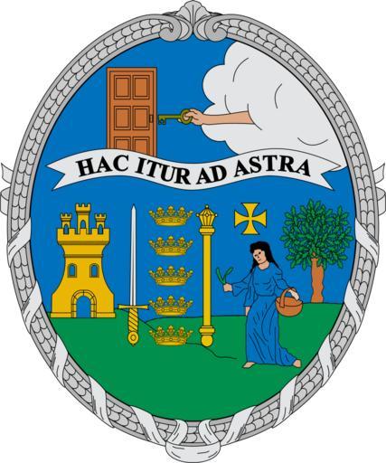 Keywords: Escudo de Aracena.svg Escudo de Aracena Huelva España Boca ovalada y sin timbrar de azur cinco coronas reales antiguas de oro en palo adiestradas de espada alta desnuda de plata encabada de oro y siniestrada de cetro de oro; adiestrada la espada de castillo de oro y el cetro siniestrado de matrona de ropaje azur que porta en la mano derecha unas ramitas y en la izquierda un cesto que apoya en el cuadril llevando un tercer brazo derecho pegado al cuerpo superada de cruceta de los templarios y siniestrada de encina al natural Los muebles asentados sobre accidentada terraza de sinople El todo superado de cinta flotante con la leyenda Hac itur ad astra Desde aquí se llega a las estrellas sumada a la diestra de una puerta y a la siniestra de nubes moviente del catón siniestro de la cabeza de las que surge un brazo derecho que empuña una llave dirigida a la diestra Completa la composición una cenefa de trazo artístico http //www diphuelva es/asp/Archivo/Heraldica/fichamunicipio asp mun Aracena idm 7 Diputación de Huelva Aracena Own 28/03/22008 HansenBCN insignia Coats of arms of municipalities of the province of Huelva Aracena Aracena SVG coats of arms of Spain Aracena Coats of arms by the Taller de Heráldica y Vexilología in the Spanish Wikipedia Aracena Castles in heraldry Aracena Trees in heraldry Aracena Swords in heraldry Aracena Clouds in heraldry Aracena 1 key in heraldry Aracena Heraldic mottos Aracena Latin mottos in heraldry Hac itur ad astra Women in heraldry Aracena Heraldic consoles Oval-shaped heraldic shields |
