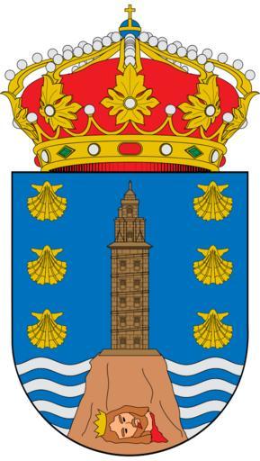 Keywords: Escudo de la provincia de A Coruña.svg Escudo de la provincia de La Coruña España En campo de azur la torre de Hércules en su color sobre una peña rodeada de ondas de mar de plata y azur brochante sobre la peña la cabeza caída del legendario rey Gerión de carnación coronada de oro con la boca y cuello ensangrentados todo ello acompañado de seis veneras de oro Timbre Corona real cerrada http //www fortunecity com/victorian/prado/203/of_galic htm Heráldica oficial escudo de la provincia de La Coruña Own 2007-12-29 HansenBCN 40px Coats of arms of A Coruña SVG coats of arms of Spain |