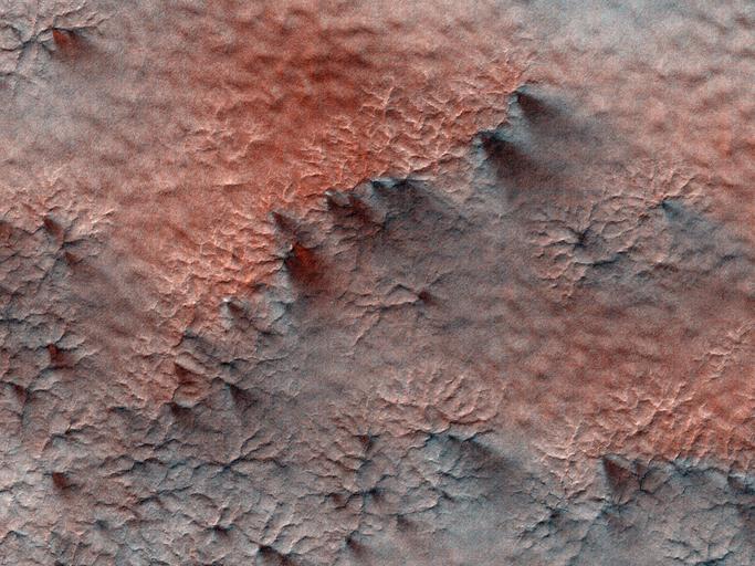 Keywords: mars nasa mro jpl science landscape geology outdoor texture Spiders on Mounds: This landform is uniquely Martian, formed in the spring as seasonal dry ice turns directly into gas. NASA/JPL/University of Arizona (www.uahirise.org/ESP_046562_1005) Spiders on Mounds: This landform is uniquely Martian, formed in the spring as seasonal dry ice turns directly into gas. NASA/JPL/University of Arizona (www.uahirise.org/ESP_046562_1005) |