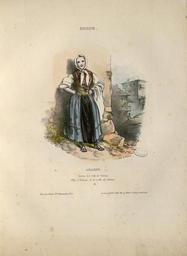 Keywords: Espagne - Aragon - Sierva del Valle de Gistain = Fille d'Auberge de la Vallée de Gistain - Fonds Ancely - B315556101 A GAVARNI 2 016.jpg Suite de 24 lithographies coloriées avec légende en français et en espagnol numérotées de 1 à 24 couverture lithographiée portant une vignette en noir Montaneses de la frontera de Francia Très rare oeuvre de jeunesse de Gavarni Les pl ne sont pas signées elles portent la mention lith de Lemercier en bas à droite et les deux adresses de Rittner Epreuves en coloris de l'époque sous une couverture de livraison Il existe des tirages avant la lettre non coloriés Pièces jointes extrait du catalogue de la vente de la Bibliothèque de Bonnelles 1933 et couvertures en doublet et en feuilles de l'album Gavarni Ancely René 1876 - 1966 Possesseur fre spa public domain domaine public B315556101_A_GAVARNI_2_016 jpg image/jpeg 1 pl en coul non signée ; 29 cm Lemercier Alfred Léon 18 -18 ; lithographe Lithographe Rittner Henri 1802-1840 ; éditeur Editeur http //numerique bibliotheque toulouse fr/collect/general/index/assoc//ark /74899/B315556101_A_GAVARNI_2_016 dir/B315556101_A_GAVARNI_2_016 jpg Bibliothèque municipale de Toulouse A-GAVARNI 2-13 Creator Paul Gavarni http //catalogues toulouse fr/web2/tramp2 exe/do_keyword_search/log_in setting_key BMT1 servers 1home query p000522 vignette http //numerique bibliotheque toulouse fr/collect/general/index/assoc//ark /74899/B315556101_A_GAVARNI_2_016 dir/B315556101_A_GAVARNI_2_016_thumb jpeg 1829 Espagne - Aragon - Sierva del Valle de Gistain Fille d'Auberge de la Vallée de Gistain B315556101_A_GAVARNI_2_016 print - colors - color lithograph Women in art Skirts in art History of Pyrénées Aprons in art Province of Huesca Caps in art Laundry Shoes in art National costumes in art Villages in art Houses in art Sobrarbe Paul Gavarni Scarves in art Bodices |