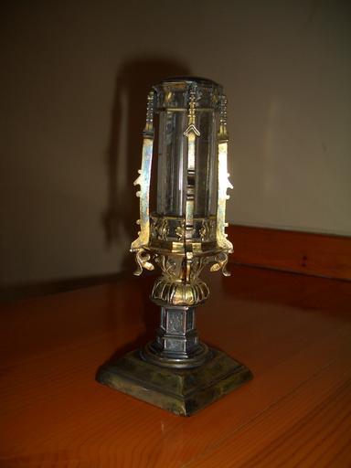 Keywords: Espina santa.JPG ca Fotografia actual del reliquiari de la Santa Espina Valls conserva una Espina Santa es a dir una de les espines de la corona de la passió de Jesucrist Era un record familiar del pare del rei de Xipre Pere de Lusignan casat amb Elionor El 1948 es va inaugurar el nou convent i capella de les Carmelites construït damunt de les runes de l ™antic edifici L ™Espina Santa es guarda dintre d ™un estoig de vidre amb forma de tub inserit en un reliquiari de plata own Magdeta Valls Reliquaries in Catalonia |