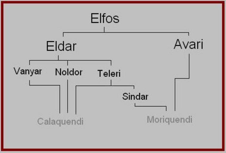 Keywords: Esquema elfos Tolkien.JPG Es un sencillo esquema de las principales ramas raciales de los Elfos en la obra de J R R Tolkien 2006-02-03 own assumed Alexquendi~commonswiki Middle-earth Elves Middle-earth diagrams Diagrams in Spanish