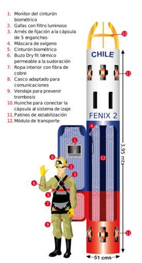 | Keywords: Esquema Fenix-minero.svg en Diagrams of the rescue capsule Fenix class and the miner equipment used in the Copiapó accident of 2010 rescue es Diagramas de la cápsula de rescate clase Fenix y del equipamiento minero usado en el rescate en el accidente de Copiapó de 2010 own Lufke 2010-11-13 own work Trabajo derivado de la imagen en la página 2 del diario La Segunda del 12 de Octubre de 2010 Nº 23112 Fénix rescue capsules | ||||