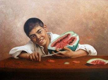 | Keywords: Estevão Silva - Menino com melancia, 1889.jpg Artwork Creator Estêvão Silva Menino com melância Boy with a watermelon 1889 oil canvas cm 54 71 Institution Pinacoteca do Estado de São Paulo Original upload 2008 12 28 by User Dornicke; Procedência Doação Associação dos Amigos da PE 1998 Pinacoteca do Estado de São Paulo http //www pinacoteca org br/ pagid acervohttp //www pinacoteca org br/img/acervo/p/206 jpg PD-old-100 Other versions DEFAULTSORT Silva Estevao 1889 paintings Academic paintings in Brazil Brazilian paintings in the Pinacoteca do Estado de São Paulo Paintings of boys Smiling boys People with fruits in art Paintings of melons Child labour in art Estêvão Silva Smiling in art 1880s paintings from Brazil |