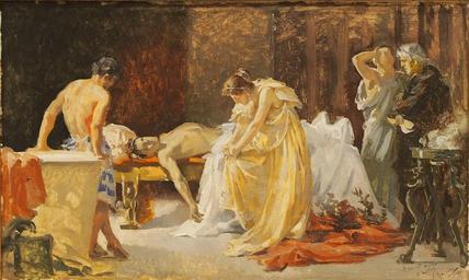 Keywords: Estudio para La muerte de Lucano - José Garnelo y Alda.jpg Artwork Creator José Garnelo y Alda 1887 Oil on canvas Size cm 30 50 Institution Museo de Bellas Artes Córdoba Accession number CE1676P Credit line Object history https //c1 staticflickr com/9/8869/17739188576_a9a18cf10b_k jpg Other versions Custom license marker 2016 04 24 PD-old-auto-1923 1944 History paintings in the Museum of Fine Arts of Córdoba Paintings by José Garnelo y Alda in the Museum of Fine Arts of Córdoba 19th-century paintings in the Museum of Fine Arts of Córdoba |