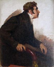| Keywords: Estudo de figuras humanas para a tela Cortes Constituintes de 1821 (Tomé Rodrigues Sobral) - Veloso Salgado, 1920.png pt Estudo de figuras humanas para a tela Cortes Constituintes de 1821 de Veloso Salgado A personagem representada é Tomé Rodrigues Sobral homem adulto de cabelo escuro curto ondulado e patilha prolongada em bico até meio do rosto sentado de perfil para o espectador voltado a três quartos para a direita inclinado para a frente apoiando a mão direita no respectivo braço da cadeira e o braço esquerdo no oposto Assinado e datado à direita V Salgado 1920 en Study of human figures for the painting The Constituent Courts of 1821 by Veloso Salgado The depicted individual is Tomé Rodrigues Sobral an adult male with dark short wavy hair and a long thin sideburn sitting in profile from the viewer's point of view leaning forwards with his hands resting on the arms of the chair Signed to the right V Salgado 1920 1920 http //museu parlamento pt/MatrizWebAR/Objectos/ObjectosConsultar aspx IdReg 507 EntSep 5 MatrizPix - Museu da Assembleia da República Creator Veloso Salgado other versions Custom license marker 2016 10 29 PD-old-70 Tomé Rodrigues Sobral Studies for As Cortes Constituintes de 1821 Veloso Salgado |