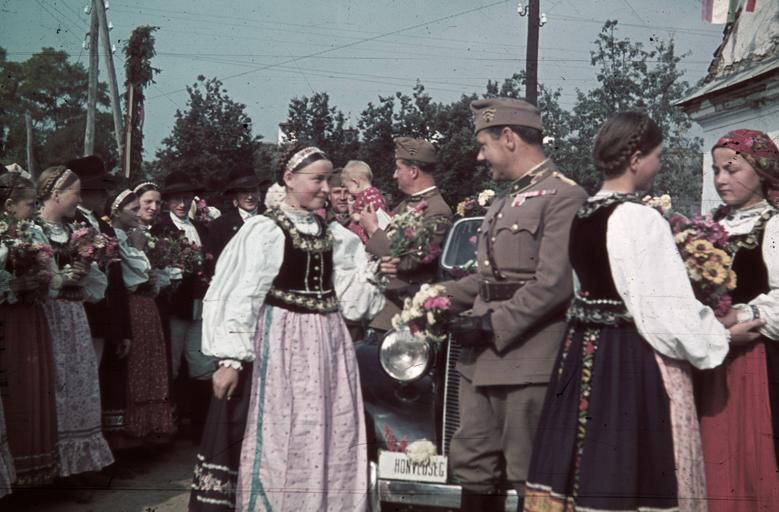 | Keywords: Észak-Erdély. Fortepan 3967.jpg hu Észak-Erdély Location Romania Transylvania Tags colorful soldier officer flower folk costume Title Észak-Erdély http //www fortepan hu/_photo/download/fortepan_8552 jpg 1940 Fortepan 3967 http //www fortepan hu/_photo/download/fortepan_8552 jpg http //www fortepan hu/ lang en img 3967 Unknown The release at fortepan hu is CC-BY-SA-3 0 As the photographer is unknown or pseudonymous and the photograph is Age 1940 01 01 years old it is considered public domain both in the country of publication Hungary and the USA where Wikimedia Commons is hosted See Fortepan HU for more information on related uploads PD-anon-70-EU PD-anon-auto-1996 1940 Hungary DEFAULTSORT Fortepan 003967 1940 photographs Images uploaded by Fæ Colour photographs from Fortepan Traditional clothes of Hungary Northern Transylvania Second Vienna Award Military history of Hungary during World War II World War II color photographs in Hungary |