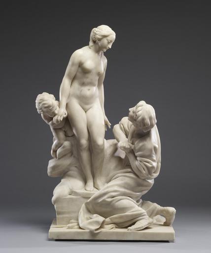 | Keywords: Etienne-Maurice Falconet - Pygmalion and Galatea - Walters 27387 - View A.jpg This statue is very likely the one exhibited by the artist at the Salon of 1763 The subject is taken from the Roman poet Ovid's tale of Pygmalion Pygmalion is depicted in rapturous amazement at the feet of his love object a nude sculpture just at the moment when it is given life by Venus the goddess of love It is one of several celebrated works that established Falconet as one of the most influential sculptors of the second half of the 18th century Falconet was supported by Louis XV's mistress Mme de Pompadour through whose influence he was put in charge of sculpture at the Royal Porcelain Manufactory at Sèvres A version of this sculpture was supplied by the artist as a model for reproduction by the manufacturer in white biscuit porcelain Although this marble statue shares the same spirit as the painter Boucher's lighthearted and often erotic works Falconet also created ambitious sculptures noted for their sober Classicism the most famous example being his heroic equestrian portrait of Peter the Great in St Petersburg 1763 marble cm 58 42 accession number 27 387 17579 Gaston Le Breton Ambatielos date and mode of acquisition unknown Arnold Seligmann Rey Co date and mode of acquisition unknown Henry Walters city Baltimore Walters Art Museum Henry Walters Acquired by Henry Walters 1924 Art about Art Painting and Sculpture in Competition Wettstreit der Künste Malerei und Skulptur von Dürer bis Daumier Haus der Kunst Munich; Wallraf-Richartz-Museum Köln 2002 place of origin France Walters Art Museum license Étienne Maurice Falconet Media contributed by the Walters Art Museum needs category review Sculptures in the Walters Art Museum |