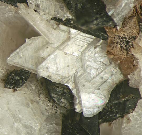 Keywords: Eudidymite - Poudrette quarry, Mont Saint-Hilaire, Quebec, Canada.jpg These xl have a beautiful mother of pearl luster In this pegmatite eudidymite was more plentiful than albite Unfortunately in the heat of battle - and without a scope - it looked all too much like pearly albite so I only picked up a couple of small pieces Aaargh Eudidymit Sichtfeld 4 1 x 3 9 mm Fundort Poudrette quarry Demix quarry; Uni-Mix quarry; Desourdy quarry Mont Saint-Hilaire Rouville RCM Montérégie Québec Kanada http //www mindat org/photo-170860 html 2008-06-20 http //www mindat org/user-11235 html 0 Modris Baum Modris Baum Eudidymite Files by Modris Baum from mindat |