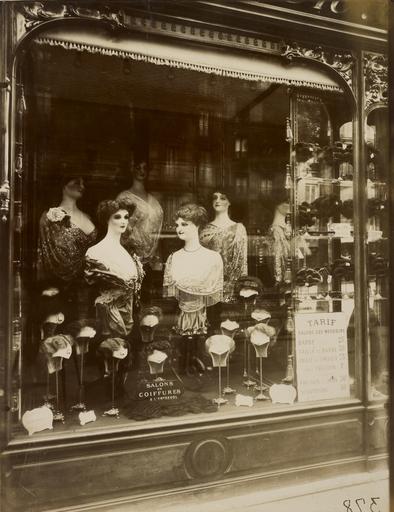 | Keywords: Eugène Atget, Boulevard de Strasbourg - Getty Museum.jpg Artwork en When creating this photograph of a hairdresser's shop window Eugène Atget documented the fashionable pompadours and upsweeps of the period as well as the popular plunging necklines and draping shawls This establishment offered a wide variety of hairstyling services from cutting to dressing and a selection of wigs both full and partial To make the shop's services and wares more alluring the mannequins wear elaborate cosmetics and filmy delicate fabrics Beginning in the mid-1800s when haute couture first appeared Paris dictated the chic mode in women's styles Fashion plates and journals throughout Europe and America illustrated French garments and accessories Although Atget specifically avoided photographing subjects associated with fashion and individual display this composition reveals his fascination for how shopkeepers exhibited their wares 1912 Gelatin silver chloride printing-out paper print Image 23 x 17 9 cm 9 1/16 x 7 1/16 in Institution Getty Museum object history exhibition history other versions 69980 Markings Atget Paris wet stamp verso print Inscription Inscribed verso print - - Bd de Strasbourg ; negative number inscribed in negative credit line accession number 90 XM 64 20 PD-old-auto 1927 1912 in Paris 1912 photographs Photographs of Paris by Eugène Atget Photographs in the Getty Museum Boulevard de Strasbourg Paris Hairdressing shops in Paris Shop windows in Paris Fashion in 1912 |