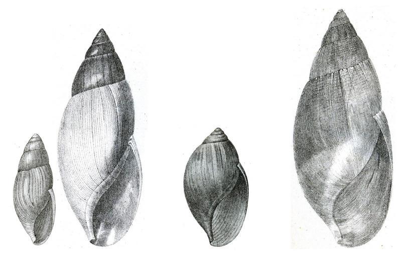 Keywords: EuglandinaRoseaExBinney2.jpg Left to Right Euglandina rosea 2 specimens Euglandina rosea bullata and Euglandina vanuxemensis scanned images from Binney WG 1878 The Terrestrial Air-Breathing Mollusks of the United States and Adjacent Territories of North America Vol 5 Bull Mus Comp Zool Harvard Univ Plates 60 61 62 and 62a original 1878 scan 2007 William Greene Binney 1833-1909; U S A scanned by Tim Ross left thumb Euglandina vanuxemensis PD-old-80 Euglandina rosea Euglandina rosea bullata Euglandina vanuxemensis |