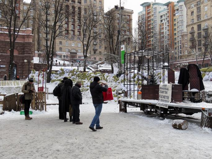 Keywords: cityscape Euromaidan Ukraine Kiev winter snow people
