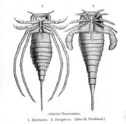 Keywords: Eurypterids.jpg Eurypterids http //archive org/stream/extinctmonstersc00hutc page/56/mode/1up Rev H N Hutchinson 1910 Extinct monsters and creatures of other days Chapman Hall London 1910 creator Joseph Smit pd-old-70 Eurypterida