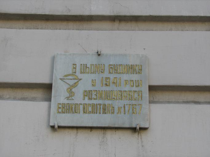 Keywords: Evakohospital.JPG uk а цьому фото показана дошка яка показує що у 1941 оці в цьому будинку озміщувався евакогоспіталь 1767 own Tuma26 Plaques in Poltava 4 Kuibyshev Street Poltava