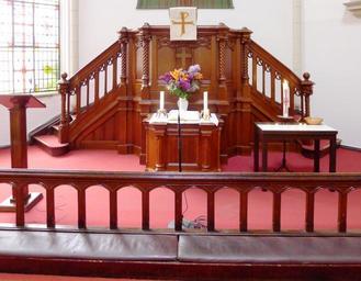 Keywords: Evangelisch-methodistische Christus-Kirche (Berlin-Kreuzberg) Kanzelaltar.jpg de Blick auf den Kanzelaltar own Bodo Kubrak 2013-05-10 Pulpit altars in Berlin Christuskirche Tempelhofer Vorstadt Cc-zero Christuskirche Tempelhofer Vorstadt Berlin |