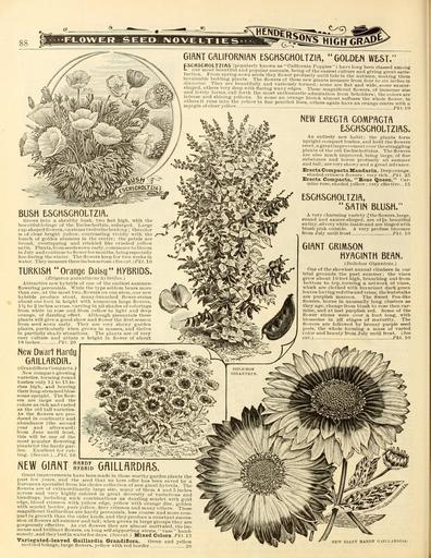 | Keywords: Everything for the garden (16668017789).jpg BUSH tSGHSGHOLTZm <br> Grnwe into a Bhnit by bush two feet high with the <br> beautiful foliage of the Escliseholtzia enlarged Large <br> cup-shaped flowers on steum twelve inches long; the color <br> is of clear bright yellow contrasting vividly with tlie <br> bunch of golden stamens in the centre; the petals are <br> broad overlapping and crinkled like crushed yellow <br> satin Plants from seeds sown early commence to bloom <br> in July and continue to flower for month8 beingeBp 'iially <br> flneduring tliewinter The flowers keep for two weeks in <br> water Tliey measure three inches across Sc i; i/'/cf 10 <br> TURKISH Orange Daisu HYBRIDS <br> ErigeTon aurantiacus hybridnn <br> Attractive new iiybrids of one of the earliest summer- <br> flowering perennials While the type seldom bears more <br> than one at the most two flowers on one stem our new <br> hybrids produce stout many-branched flower-stems <br> about one foot in lieiglit witli numerous large flowers <br> 114 to 2 inches across varying in all shades of colorings <br> from wliite to rose and from yellow to light and deep <br> orange of dazzling effect Although perennials these <br> plants will give a good show and flower tlie first season <br> from seed sown early They are very showy garden <br> plants particularlj' wlien grown in masses and thrive <br> in partially sliady situations The plants are of very <br> easy culture and attain a height in flower of about <br> 18 inches Fkt 20 <br> New Dwart Hardu <br> GftlLLftRDIR <br> Graiidittora Compnrtn <br> New compact-growing <br> varieties forming round <br> bushes only 12 to 15 in- <br> ches high and Iiearing <br> their long-stemmed blos- <br> soms upright The flow- <br> ers are large and the <br> colors as rich and varied <br> as the old tall varieties <br> As the flowers are pro- <br> duced in continuity and <br> abundance the second <br> year and afterw ard <br> from Tune until frost <br> this will be one of the <br> most popular flowering <br> plantsfor the hardygar- <br> den Excellent for cut- <br> ting Seecut I'kt 10 <br> GIANT GALIFORNIflN ESGHSGHOLTZIfl GOLDEN WEST <br> pSCHSCHOLTZIflS popularly known as California Poppies have long been classed among <br> 7 ; ' ' – ' t beautiful and popular annuals being of the easiest culture and giving great satis- <br> faction From spnng-sown seeds they flower profusely until late in the autumn making them <br> invaluable bedding plants The flowers of these new giants measure from fotir to six i irl e« in <br> dmnwter lUey are lieautifully and variously formed; some are flat and wide some saucer- <br> shaped others very deep with flaring wavy edges These magnificent flowers of immense size <br> and lovelj forms call forth the most enthusiastic admiration from beholders the colors are <br> intense and shining yellows In some an orange blotch almost suffuses the whole flower in <br> otliers it runs into the yellow in flue penciled lines others again have an orange centre with a <br> margin of clear yellow ° ž - <br> NEW EREGTft GOMPftGTft <br> tSGHSGHOLTZIftS <br> An entirely new habit; the plants form <br> upriglit compact bushes and hold the flowers <br> erect a great improvement over the straggling <br> plants of the old Eschscholtzias Tlie flowers <br> are also much improved being large of fine <br> substance and borne profusely all summer <br> and fall ; are very showy and a great advance <br> Erecta Compacta Mandarin Deep orange <br> shaded crinisnn flowers very rich /'A-f 25 <br> Erecta Compacta Bose Queen Car- <br> mine rose shaded yellow ; very effective 15 <br> ESGHSGHOLTZIft <br> SftTlN BLUSH <br> A very charming variety ; the flowers large <br> round and saucer-sliaped are of a beautiful <br> satiny silvery white insideand are tinged with <br> blush i iiik outside A very profuse bloomer <br> from Inly until frost Pkt 10 <br> GIANT GRIMSON <br> HYAGINTH BEAN <br> Doliclius Glf anteijs <br> One of the showiest annual climbers In our <br> trial grounds the jmst summer; the vines <br> gi-ow about 10 feet high brandling out from <br> liottoin to top forming a network of vines <br> which are clothed with lu xuriant dark green <br> leaves havingredribsand veins; theleaf stalks <br> are purplish maroim The Sweet Pea-like <br> flowers borne in unusually long clusters as <br> they age change from blush to rose then car- <br> mine and at last purplish red Some of the <br> flower stems were over a foot long with <br> lilossoms in all stages of maturity The <br> flowers are followed by bronzy purple seed <br> pods the whole forming a mass of varied <br> color and beauty from July until frost See <br> cut Pit 10 <br> NEW GIANT T Io GfllLLftRDIAS <br> Great improvements have been made in these worthy garden plants the <br> past few years and the seed that we here offer has been saved bv a <br> European specialist from his choice collection of new giant hybrids The <br> flowers are of extraordinarily large size many of them 4 and 5 inches <br> across and very highly colored in great diversity of variations and <br> blendings including such combinations as dazzling scarlet with gold <br> edge blood crimson with yellow edge yellow with orange disc golden <br> with scarlet border pure yellow fiery crimson and many others These <br> magnificent Gaillardias are hardy perennials less coarse and more com- <br> pact in growth than the older kinds and they produce a constant succes- <br> sion of flowers all summer and fall ; when grown in large groups thev are <br> gorgeously effective As cut flowers they are almost unrivaled the im- <br> mense and brilliant flowers on long self-supporting stems vase hand- <br> somely and theyla stin waterfordays Seecut Mixed Colors PA-f 15 <br> Varieg'ated-leaved Gaillardia Grandiflora Green and yellow <br> mottled foliage large flowers yellow with red border 20 <br> NEW GIANT HARDY O MI I \nni \s 42383177 133997 66553 Page 88 Text http //www biodiversi