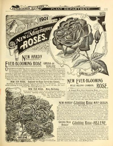 | Keywords: Everything for the garden (16828355876).jpg F VER-BL00MIN6 ROSE oruss <br> L TEPl <br> UNQUESTIONABLY the finest dark red hardy ever-blooming garden Rose in- <br> troduced to date That it is destined to attain wide popularity is assured <br> for it has all the qualities desire l in a garden Rose The color when first <br> opening is very dark rich crimson quickly changing to bright scarlet shading <br> to velvety fiery red One of the very brightest colored Roses we know The <br> flowers are large full and sweet very showy and handsome Jt blooms con- <br> stantly and continues covered wtth flowers the whole season ' See cut <br> Price 1st size 75c each ; 2d siz 50o each ; 3d size 20c each 2 00 per doz <br> NEW TEft ROSE Souvenir de Rose Terrel des Ghenes <br> Seedling of Kaiserin Augusta Victoria and Mme Jos Schwartz Yellowish <br> white shading to rosy carmine Price 1st size 60c each ; 2d size 40c each ; <br> 3d size 20c each 2 00 per doz <br> NEW TEft ROSE Mme Berkeley <br> Long pointed buds outer petals flesh pink shading to <br> lavender opening salmon shading out to pale violet <br> Price 1st size 60c each ; 2d <br> size 40c each ; 3d size 20c <br> each 2 00 per doz <br> NEW FVER-5L00MING <br> ROSE <br> MILE HtLENft GAMBIER <br> cnyricHT 1901 <br> BYFireRhiNOESiii Ilk <br> A Grand New Ever-blooming Rose color lovely <br> canary yellow with deep peachy red centre changing <br> to creamy pink as the flowers open It makes a neat <br> handsome bush blooms quickly and abundantly all <br> through the season and the flowers are large very <br> ¢double and sweet Price 1st size 60c each ; 2d size <br> 40c each ; 3d size 20c each 2 00 per doz <br> NEW flflRpy GIlmDInQ R0S6 Mfly qh n- <br> This fine climbing Rose May Queen was oV tained by crossing <br> Mrs DeGraw with the hardy running Rose Wichuraiana It is a <br> vigorous erect-growing climber well furnished with handsome foli- <br> age and bearing great numbers of lovely large double roses The <br> blooms average over three inches across are delightfully scented <br> and borne in large clusters all over the bush Color coral pink <br> very bright and handsome and an early and abundant bloomer The <br> bush is entirely hardy and particularly recommended for all situa- <br> tions where hardy free-blooming climbing roses are wanted Price <br> 1st size 50c each ; 2d size 30c each ; 3d size 20c each S2 00 per doz <br> 'ZT GIliiiDlng R0S6--HELENE <br> A strong rapid grower throwing up canes 10 to 12 feet high and <br> making a well-formed bush in a single season In growth and habit <br> it is similar to Crimson Rambler but the foliage is better and it Is <br> almost thornless It is entirely hardy and needs no protection un- <br> less very far north The flowers are larger and more double than <br> Crimson Rambler and borne in magnificent clusters entirely cover- <br> ing the bushes from top to bottom for weeks at a time The color <br> is soft violet-crimson much darker and an entirely different shade <br> from the Crimson Rambler Seecut Price 1st size 75c each; 2d <br> size 50c each ; 3d size 20c each 2 00 per doz 42383214 133997 66553 Page 125 Text http //www biodiversitylibrary org/page/42383214 1902 10 5962/bhl title 66553 Henry G Gilbert Nursery and Seed Trade Catalog Collection ; Peter Henderson Co NameFound Victoria NameConfirmed Victoria EOLID 34123 NameBankID 897688 Biodiversity Heritage Library Everything for the garden 1901 Garden Stories Catalogs Flowers Peter Henderson Co Plants Ornamental Seed industry and trade Seeds Trade catalogs U S Department of Agriculture National Agricultural Library bhl page 42383214 dc identifier http //biodiversitylibrary org/page/42383214 bhlGardenStories Roses Helene Gruss an Teplitz BHLinbloom peter henderson co plants ornamental u s department of agriculture national agricultural library bhlgardenstories gruss an teplitz bhlinbloom Information field Flickr posted date ISOdate 2015-03-18 Check categories 2015 August 24 CC-BY-2 0 BioDivLibrary https //flickr com/photos/61021753 N02/16828355876 2015-08-24 20 56 25 cc-by-2 0 PD-old-70-1923 Everything for the garden 1902 Photos uploaded from Flickr by Fæ using a script |