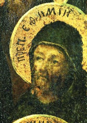 Keywords: Evfimy Pechersky.jpg П п Евфимий Киево-Пече ский Ф агмент иконы «Собо Киево-Пече ских святых» 1-я пол XIX в Ц иАР http //www pravenc ru/text/187657 html century 19 anonimus Saints of Kyiv Caves Monastery PD-Art