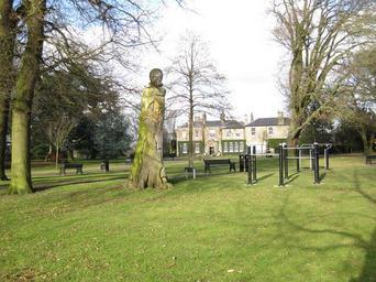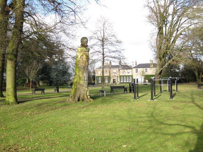 Keywords: Evington Tree of Life.JPG en Evington Park Leicester Near centre is the Tree of Life or totem pole carved by William Gardner of Leicester City Council In the foreground is some outdoor exercise equipment In the distance is Evington House 1836 own Chemical Engineer 2011-02-03 Evington Parks in Leicestershire Wooden sculptures in England |